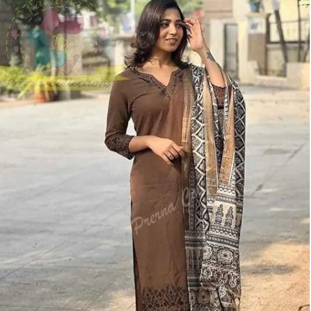 Be the first to review “Go pixi Women Pure Cotton Embroidery Straight Kurti with Pant & Dupatta Set (Brown)”